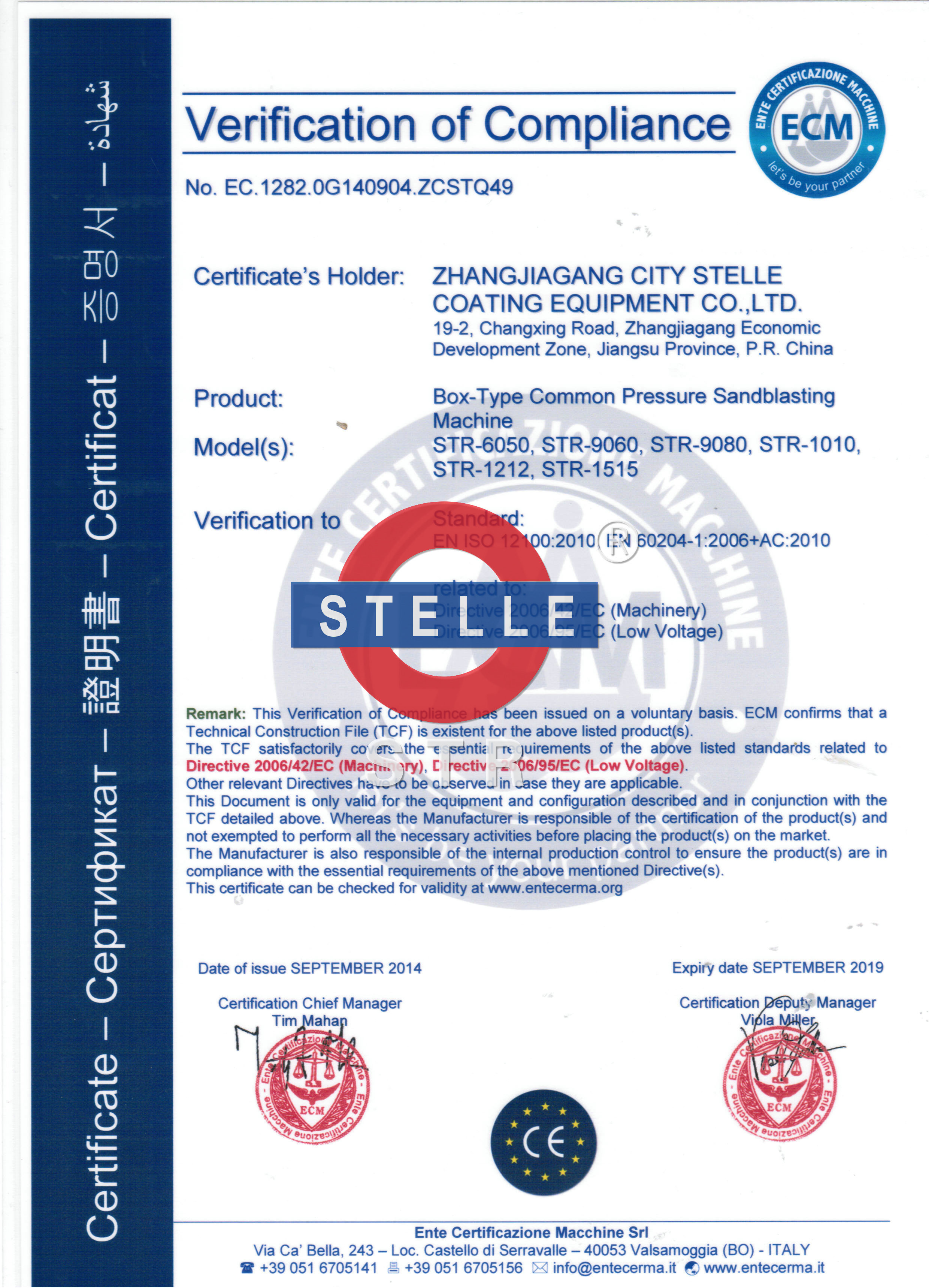 Our company has dozens of qualification documents: more than 20 inventions, practical patents, and industry members. The equipment registration certificate provided by the Quality and Technical Supervision Bureau, the registered trademark of Datong, the registered trademark of Stern, the international CE certification, the standard implementation certificate of the sandblasting machine, the quality management system certification of the blasting machine, and the coating of the Ministry of Labor Resources There are various certificates such as sandblasting engineer certificate, sandblasting machine environmental assessment emission certificate, sandblasting room environmental assessment report certificate, etc., and the number of certificates in the same industry is far ahead.